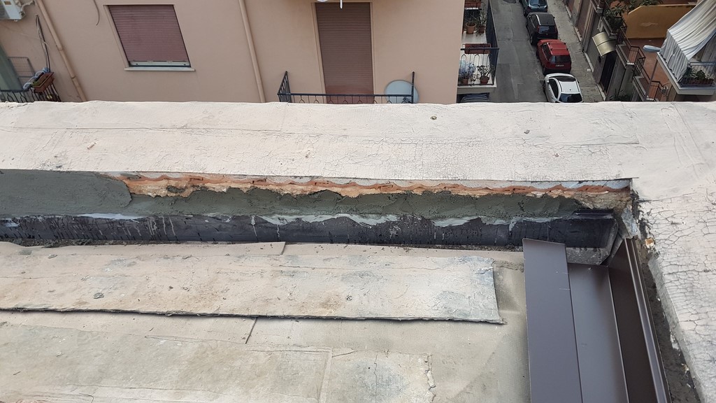 Rifacimento frontalino e collocazione grondaia per acque piovane.