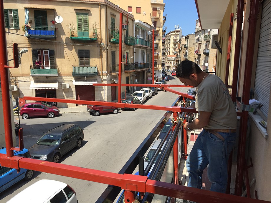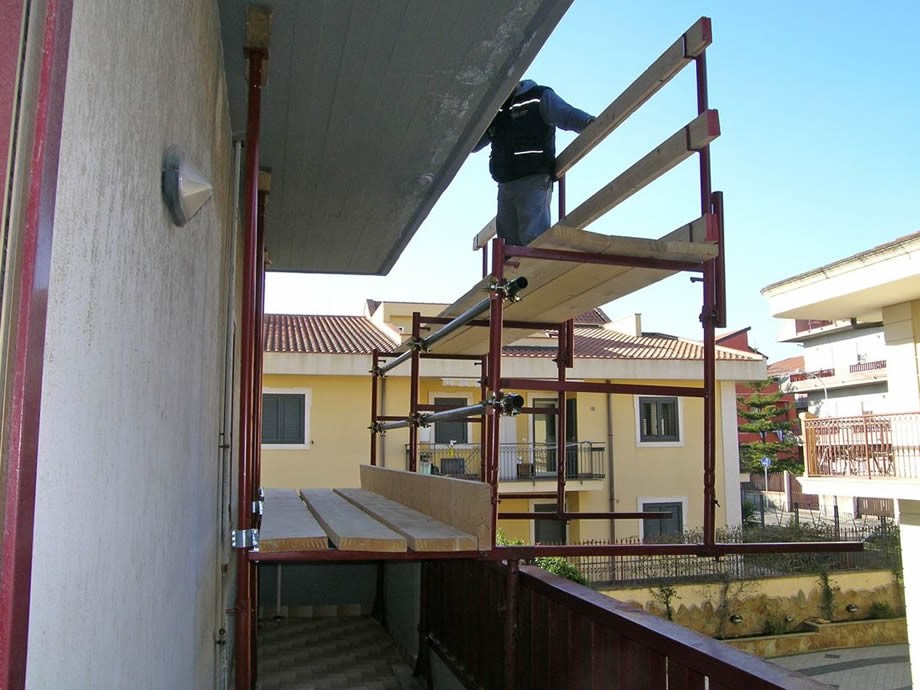 E' utile nelle operazioni rapide di manutenzione in cui è più agevole installare il supporto della piattaforma di lavoro sul balcone dell'edificio sottostante piuttosto che posizionare un ponteggio a partire dal piano terra con accorciamento dei tempi e di denaro.